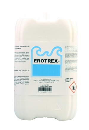Das konzentrierte, flüssige Erotrex hat sich bestens bewährt und seine hervorragende algizide Wirkung schützt das Schwimmbad zuverlässig vor sämtlichen Algenarten. Erotrex ist geruchlos und nicht schäumend.